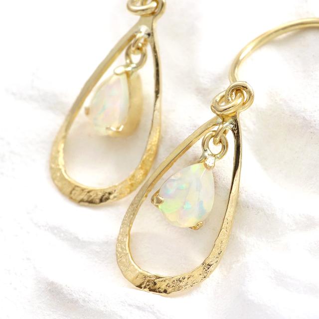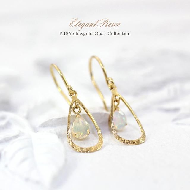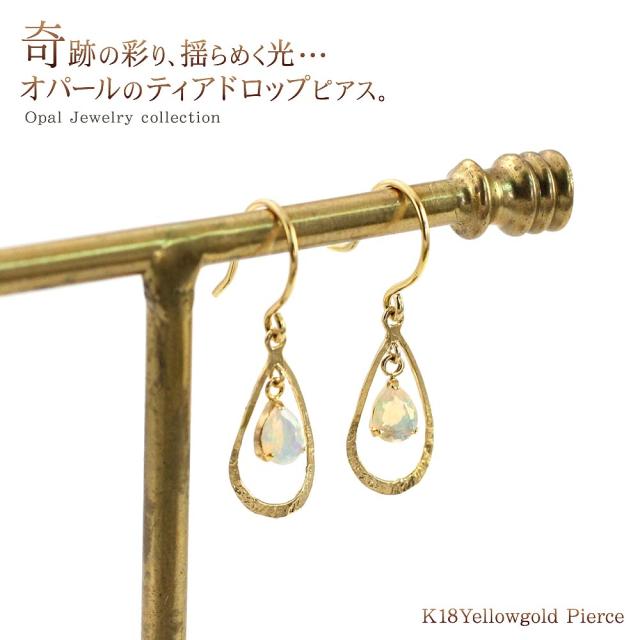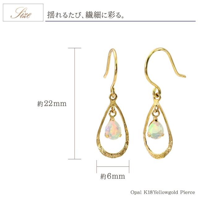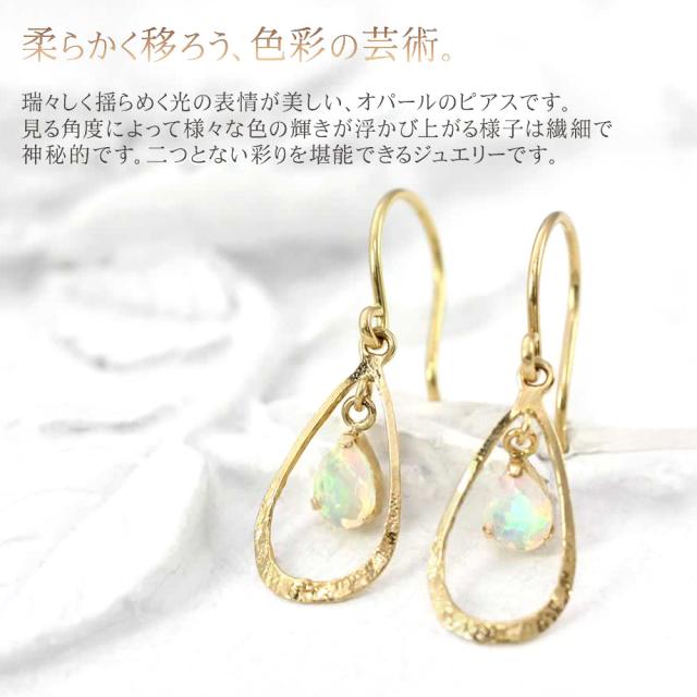 オパール ピアス 18金 レディース K18 ゴールド ジュエリー 18K フックピアス プレゼント 揺れる 10月 誕生石 ティアドロップ 可愛い ゆれる お洒落 オパールピアス 雫型 涙形 宝石 ホワイトデー お返し 記念日 誕生日 ギフト 贈り物 女性 彼女 妻 嫁 本物