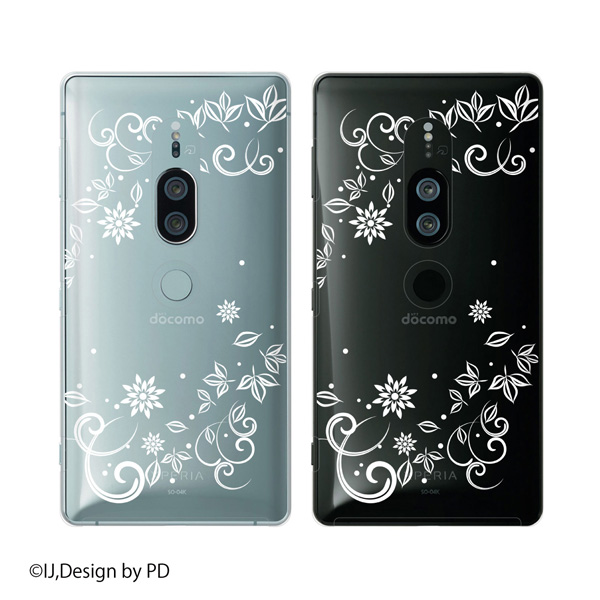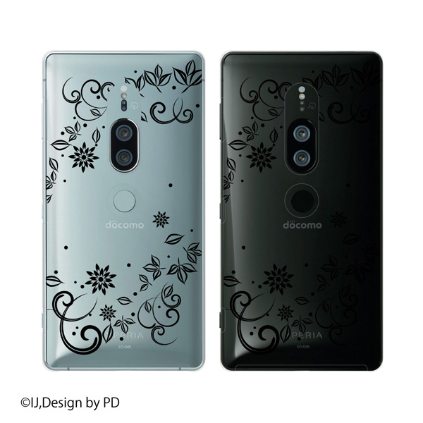 Xperia XZ2 Premium (docomo SO-04K / au SOV38) (純正卓上充電対応) スマホ ケース カバー フラワーシルエット2