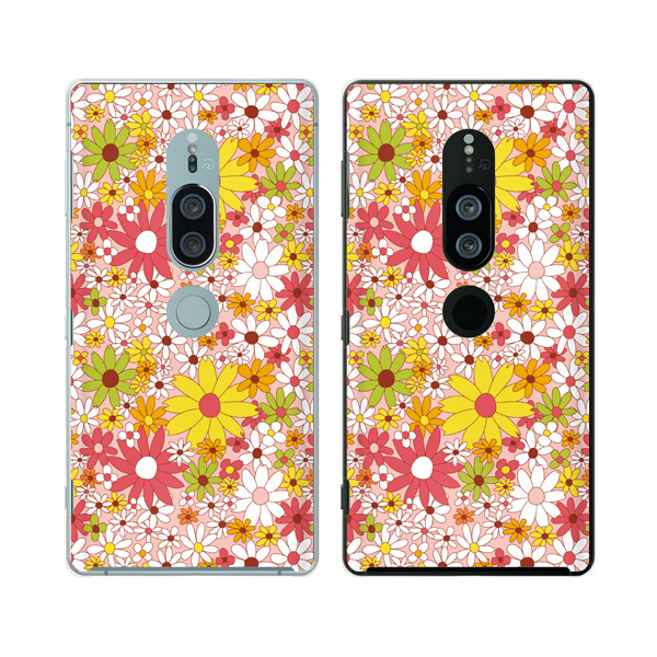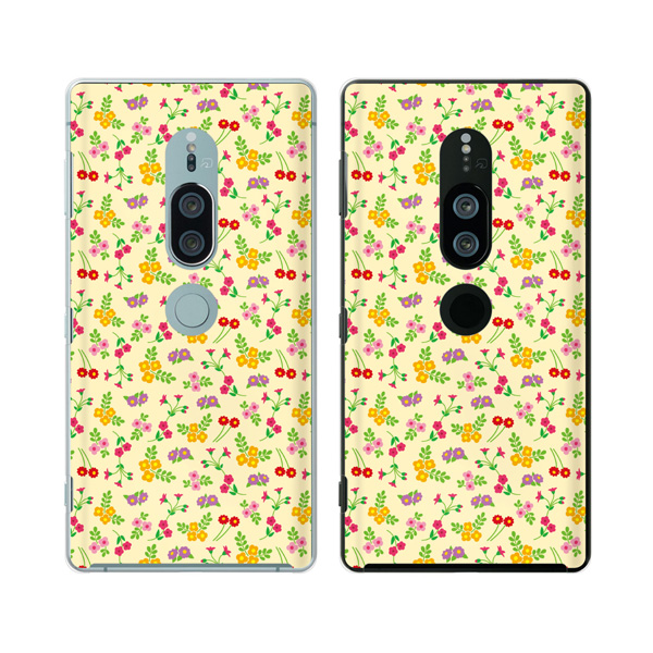 Xperia XZ2 Premium (docomo SO-04K / au SOV38) (純正卓上充電対応) スマホ ケース カバー 花柄21 小花 黄色