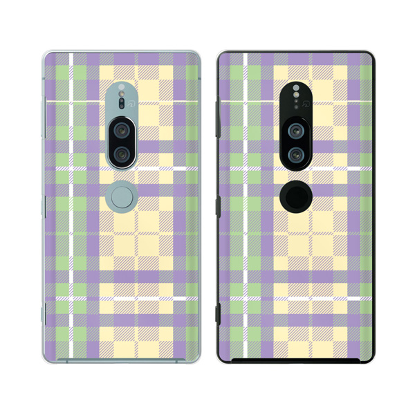 Xperia XZ2 Premium (docomo SO-04K / au SOV38) (純正卓上充電対応) スマホ ケース カバー チェック2 紫/緑/黄色