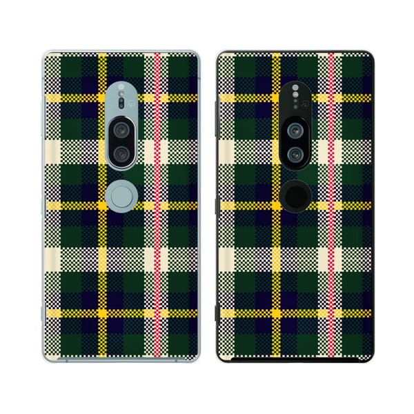Xperia XZ2 Premium (docomo SO-04K / au SOV38) (純正卓上充電対応) スマホ ケース カバー ニットチェック 緑/白/黄色