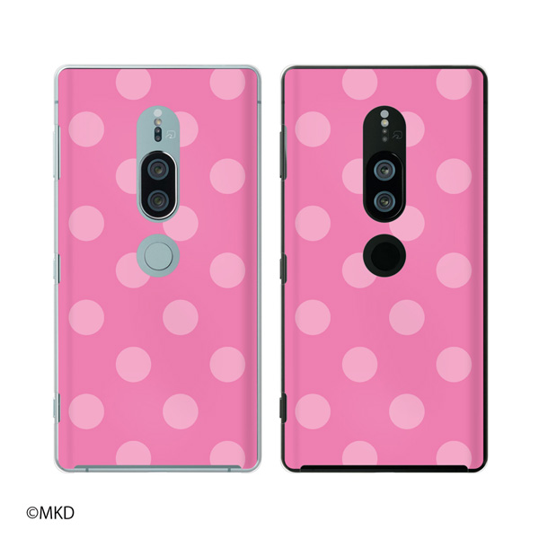 Xperia XZ2 Premium (docomo SO-04K / au SOV38) (純正卓上充電対応) スマホ ケース カバー 水玉mkd ピンク×ピンク