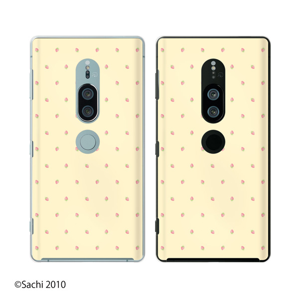 Xperia XZ2 Premium (docomo SO-04K / au SOV38) (純正卓上充電対応) スマホ ケース カバー 苺 ドット 黄色