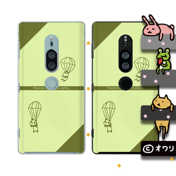 Xperia XZ2 Premium (docomo SO-04K / au SOV38) スマホ ケース カバー オワリ 「パンダパラシュート」 グリーン