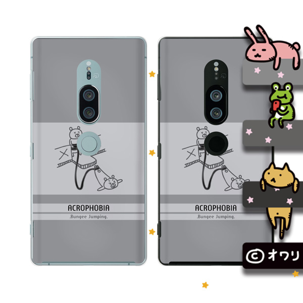 Xperia XZ2 Premium (docomo SO-04K / au SOV38) スマホ ケース カバー オワリ 「クマのバンジージャンプ」 グレー