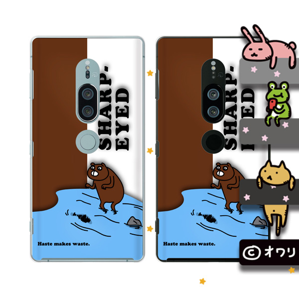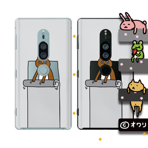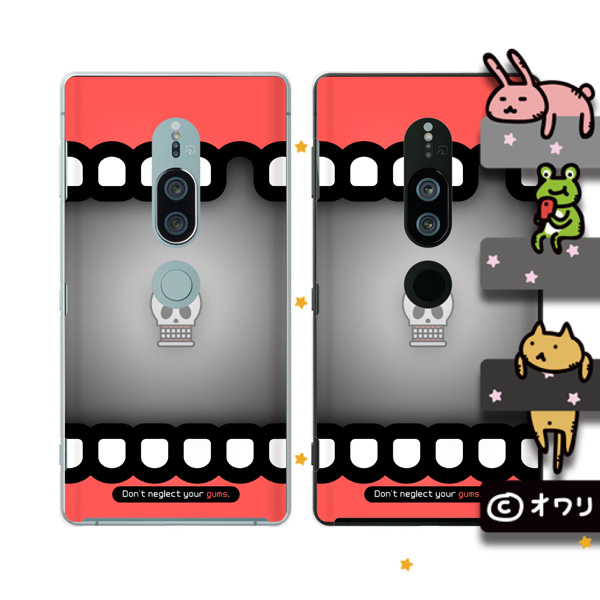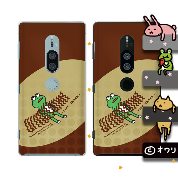 Xperia XZ2 Premium (docomo SO-04K / au SOV38) スマホ ケース カバー オワリ 「カエルとタイヤ跡」 レッド