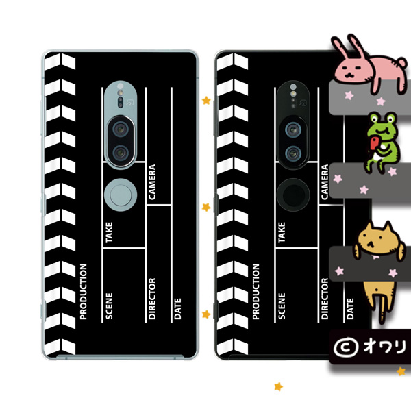 Xperia XZ2 Premium (docomo SO-04K / au SOV38) スマホ ケース カバー オワリ 「カチンコ」 ブラック