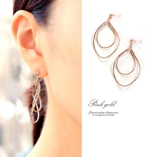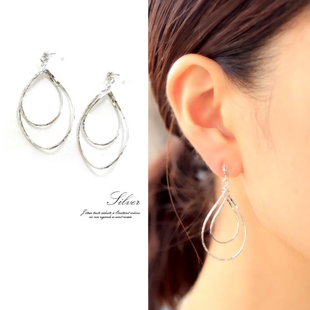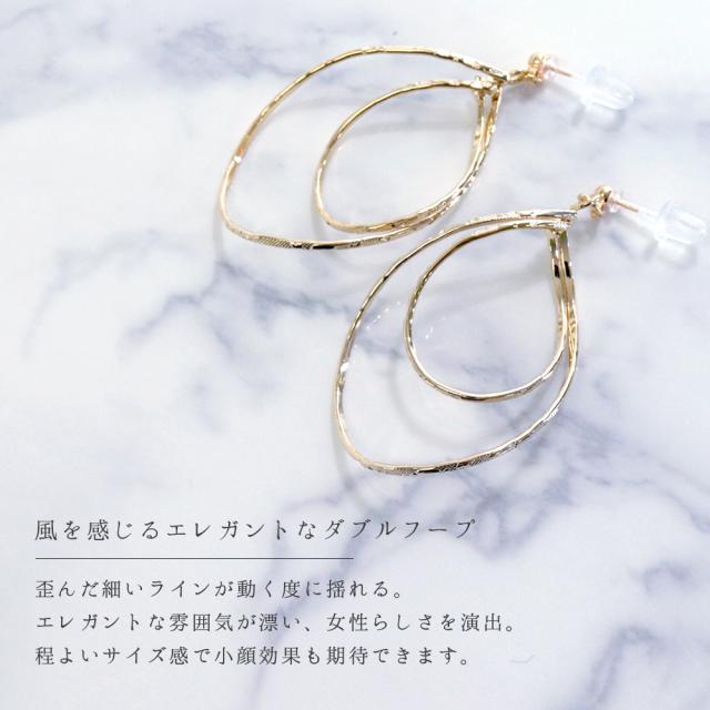 耳元で煌めくフープの重なりが素敵なピアスです。