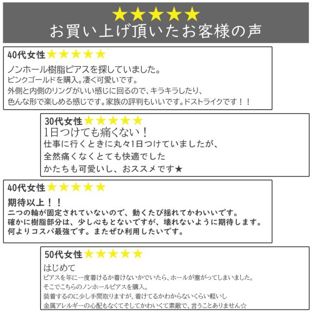 - ピンクゴールドのイヤリングを購入。耳たぶが厚いのですが、付けてても痛くなく軽くてとても可愛いです。