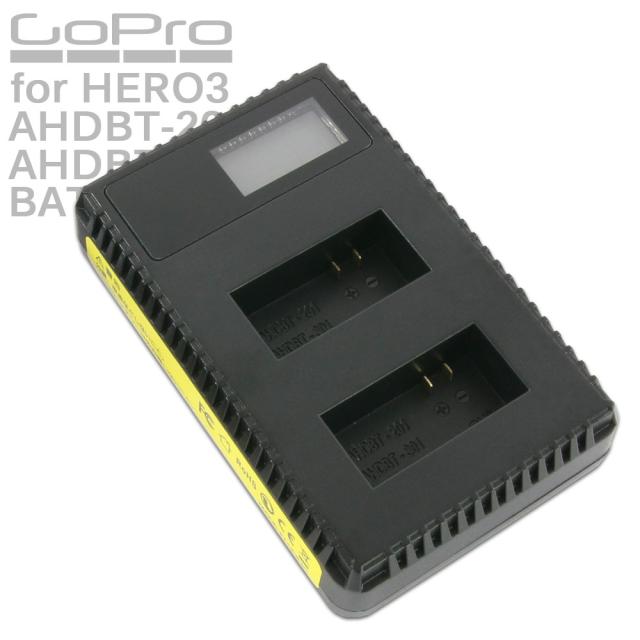 GoPro HERO3 HERO3+用 USB デュアルチャージャー バッテリー充電器 互換 AHDBT-201 AHDBT-301/302 充電池 ディスプレイ内蔵