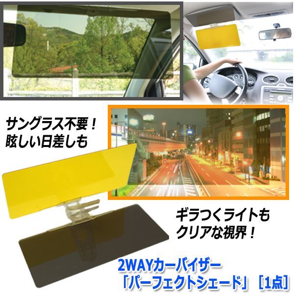 2WAYカーバイザー「パーフェクトシェード」[1点](車用 カー用品 紫外線 カット 日よけ ドライブ UVカット 乱反射 全天候 サンバイザー)