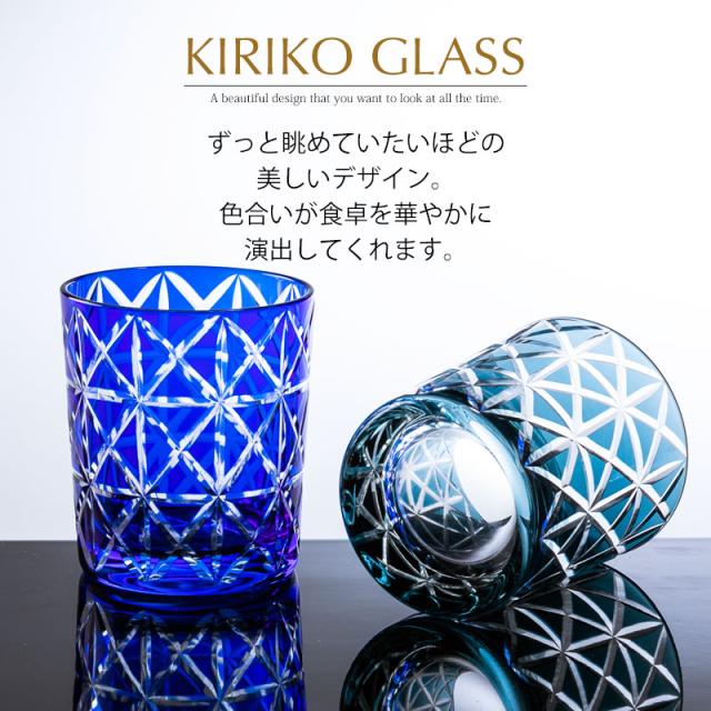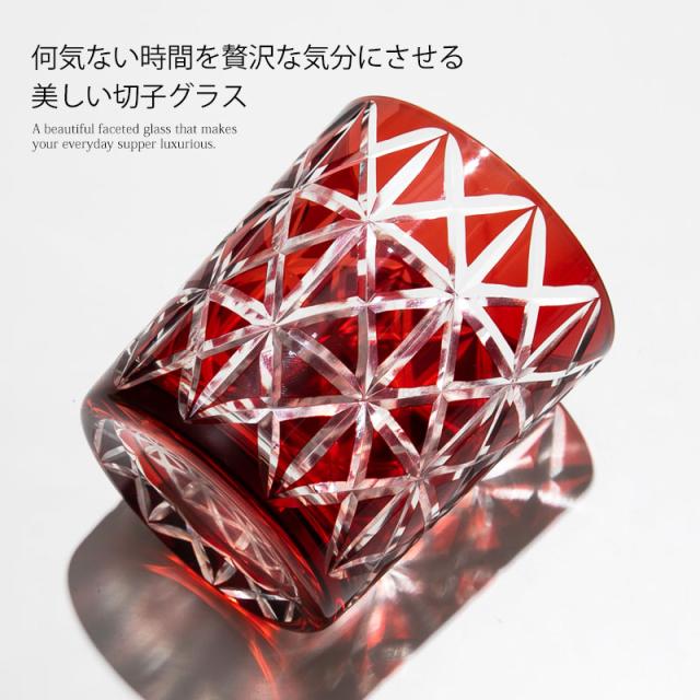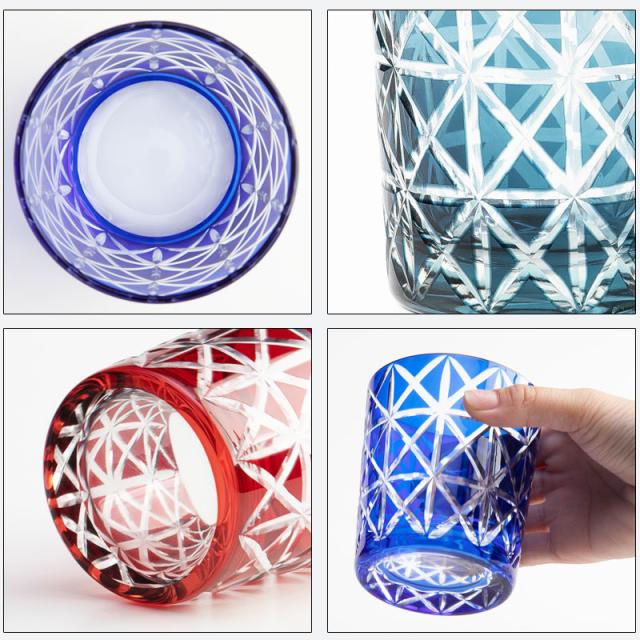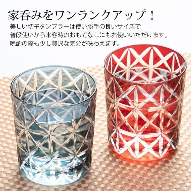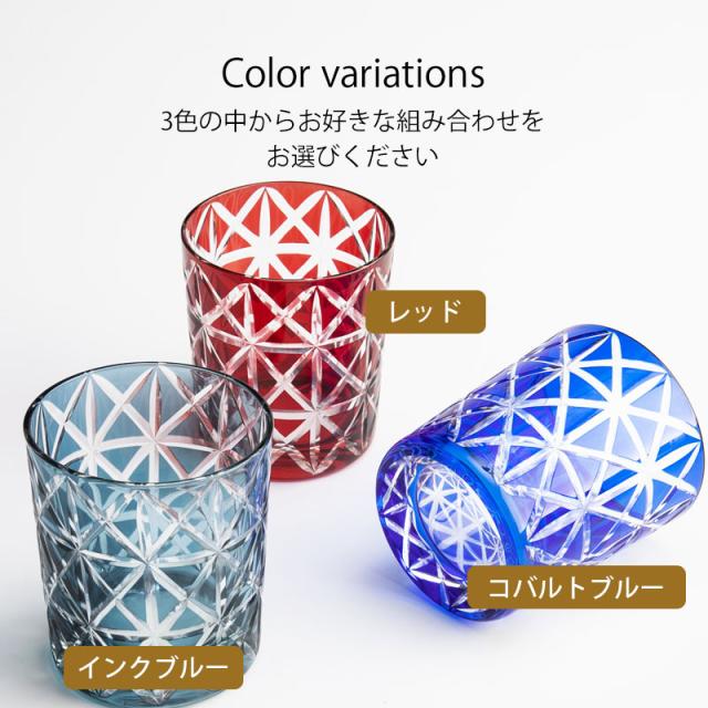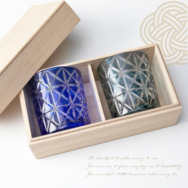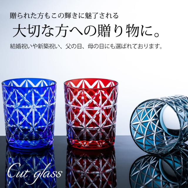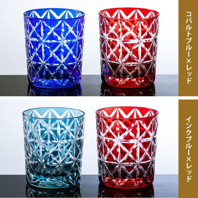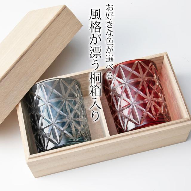 切子オールドグラス ペアセット 桐箱入り ペアセット ペアグラス 2ヶセット プレゼント ギフト 贈り物 おしゃれ ギフトボックス コップ ギフトBOX入り 麻の葉 赤 青 レッド インクブルー 食洗機対応 k_name