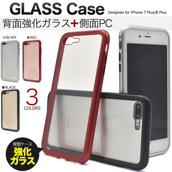 iPhone7 Plus 8 Plus用 背面ガラスバンパーケース シンプル クール 背面保護カバー カジュアル SoftBank au docomo