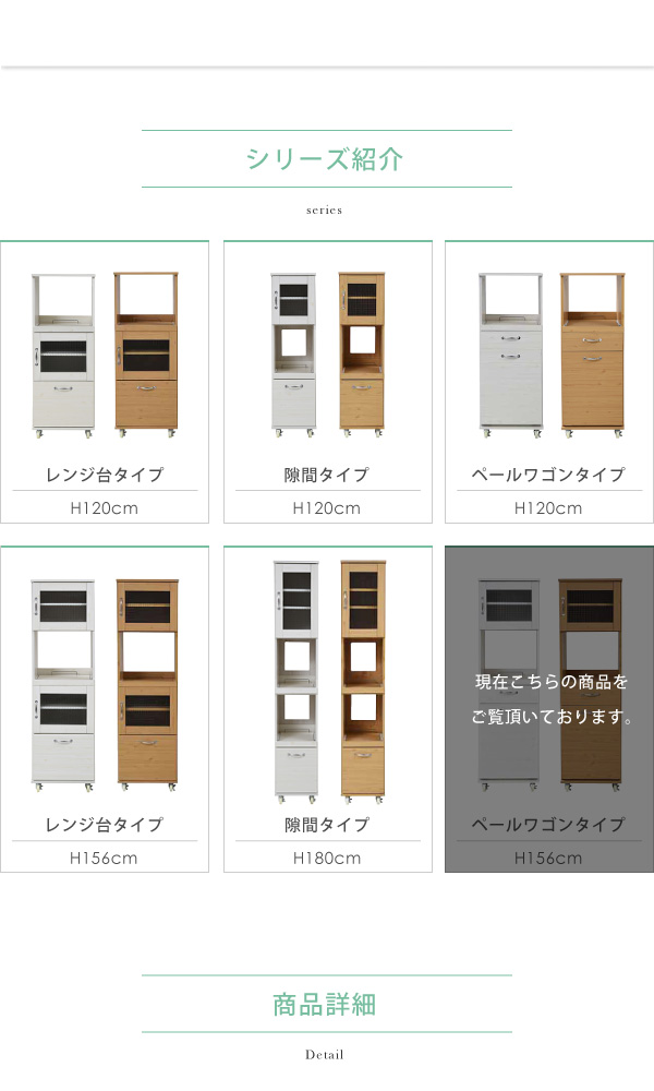 | レンジ台タイプ(H156) | 隙間タイプ(H120) | 隙間タイプ(H180) | ペールワゴンタイプ(H120) | レンジ台タイプ(H120) |