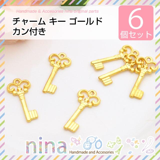 ■商品名:チャーム キー ゴールド アクセサリー カン付き 6個セット