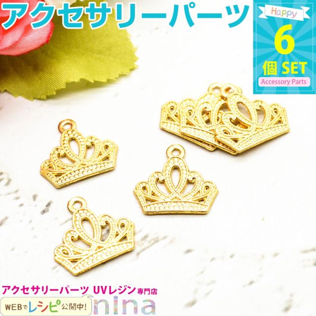 チャーム 王冠 ゴールド カン付き クラウン 6個セット チャーム 金 材料 チャーム アクセサリー 王冠 ゴールド カン付き ハンドメイド クラウン レジン液 ネックレス レジン レシピ