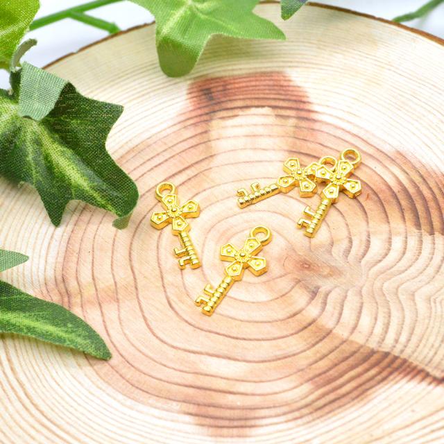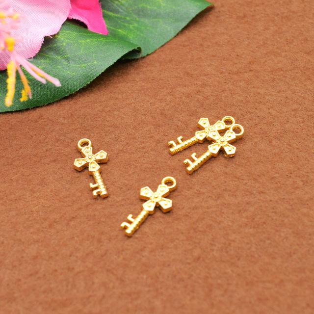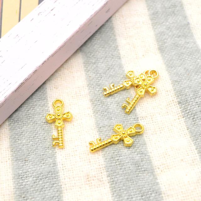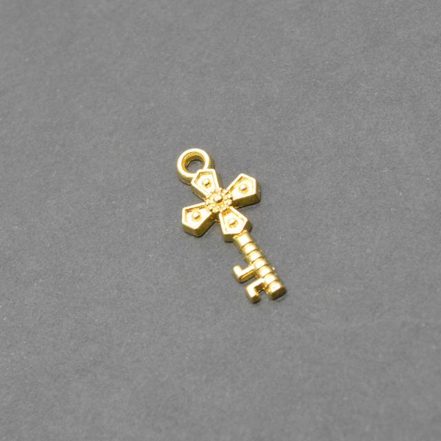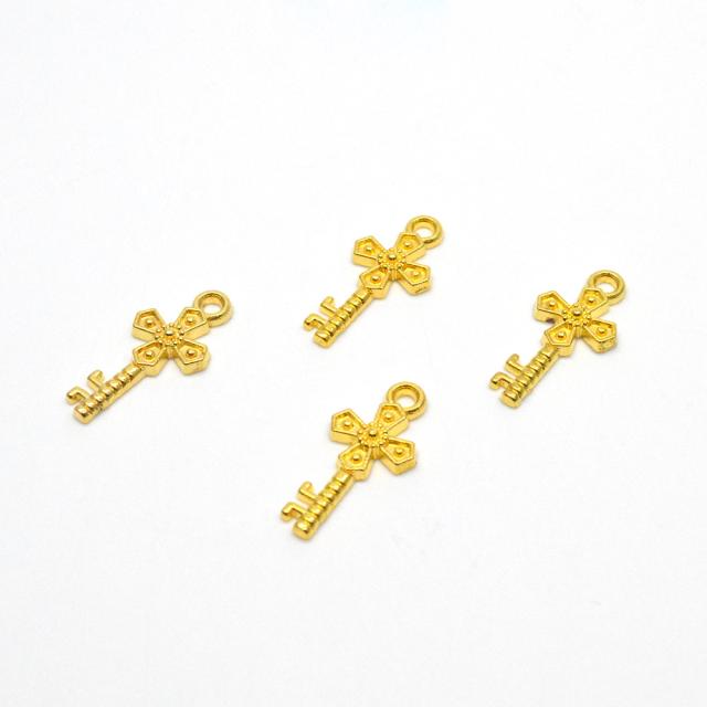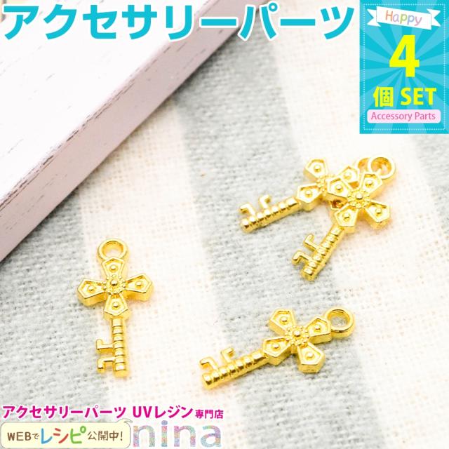 チャーム キー フラワー ゴールド カン付き 4個セット | キーチャームをプラスすればおしゃれに! / ゴールド キーチャーム 鍵 レジン液 レジン ネックレス 手芸 UVレジン ハンドメイド アクセサリー レシピ 材料 ペンダント お得 UVレジン液