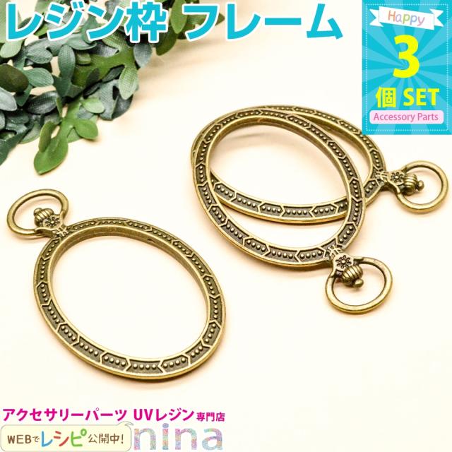 レジン枠 フレーム 金古美 楕円 懐中時計 3個セット | レジン枠がとっても可愛くなる! / 空枠 枠 レジン枠 楕円 卵 ハンドメイド 型 レジン レジンレシピ 丸 懐中時計 金古美 素材 お得 レジン液