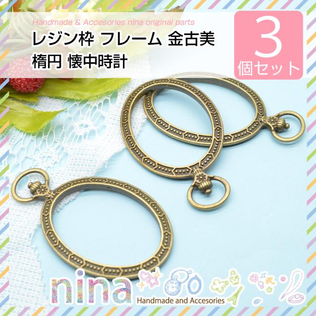 レジン枠 フレーム 金古美 楕円 懐中時計 3個セット 空枠 楕円 ハンドメイド 空枠 金古美 枠 丸 レジン枠 お得 懐中時計 卵 レジン液 素材 レジンレシピ