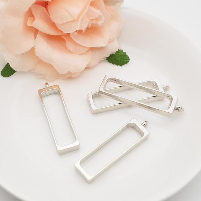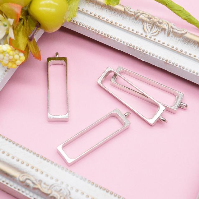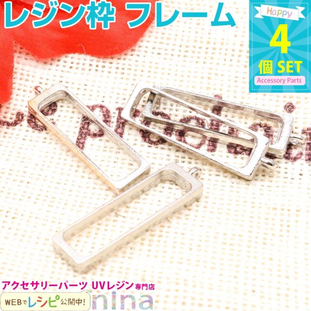 レジン枠 長方形 中 シルバー 4個セット | 自分らしいペンダントが作れちゃう! / 枠 レジン枠 空枠 長方形 レシピ レジン液 パーツ 材料 ペンダント 銀 シルバー ネックレス レジン 型 フレーム