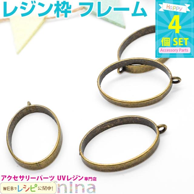 レジン枠 楕円 金古美 4個セット | 枠とレジン液があればお手軽に♪ / 枠 レジン枠 空枠 アクセサリー 型 UVレジン 大容量 銀 フレーム レジン レジン液 材料 パーツ UVレジン液 お得