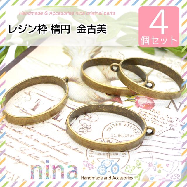 レジン枠 楕円 金古美 4個セット 枠 アクセサリー UVレジン 枠 材料 レジン枠 レジン 空枠 UVレジン液 レジン液 型 お得 パーツ フレーム