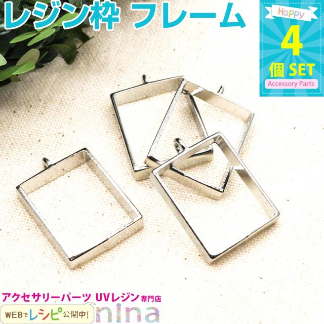 レジン枠 長方形 小 シルバー 4個セット | 空枠でレジンアクセサリーに挑戦!! / 空枠 枠 レジン枠 長方形 セット アクセサリー 材料 レジン液 大容量 シルバー レシピ お得 ハンドメイド レジン 型