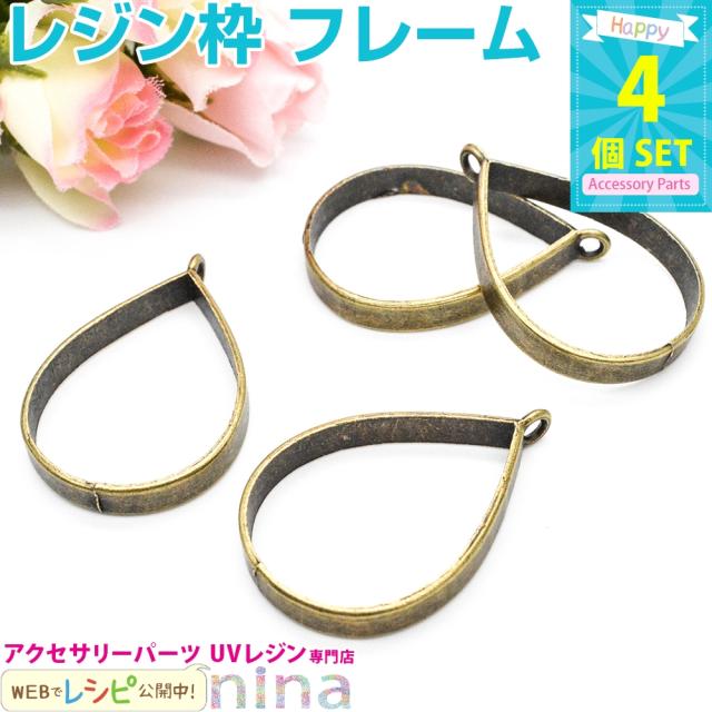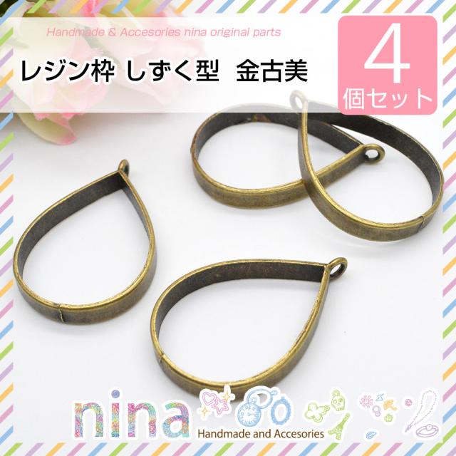 レジン枠 しずく型 金古美 4個セット 枠 金古美 材料 枠 レジン レジン枠 しずく枠 空枠 フレーム ハンドメイド アクセサリー UVレジン 型 レジン液