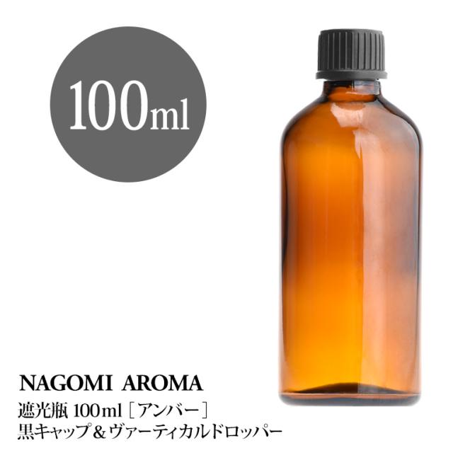 遮光瓶 100ml(アンバー) 黒キャップ&ヴァーティカルドロッパー 瓶 遮光 茶色 容器 ビン 化粧水 コスメ ボトル 保存容器