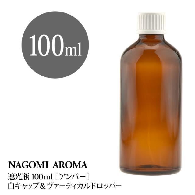 遮光瓶 100ml(アンバー) 白キャップ&ヴァーティカルドロッパー 瓶 遮光 茶色 容器 ビン 化粧水 コスメ ボトル 保存容器