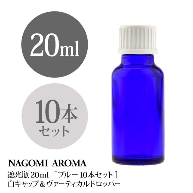 遮光瓶 20ml(ブルー) 10本セット白キャップ&ヴァーティカルドロッパー 瓶 遮光 青 容器 ビン 化粧水 コスメ ボトル 保存容器