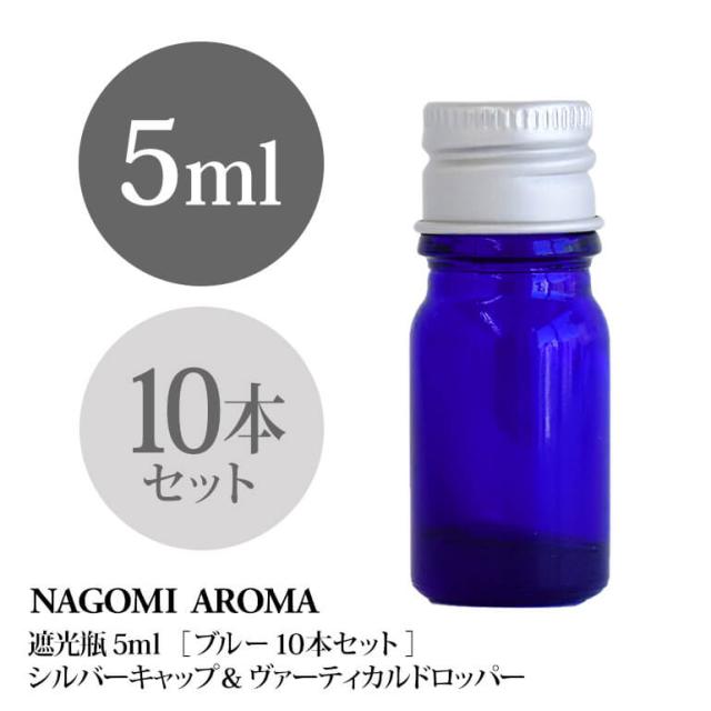 遮光瓶 5ml(ブルー) 10本セット アルミキャップ ヴァーティカルドロッパー 瓶 遮光 青 容器 ビン 化粧水 コスメ ボトル 保存容器