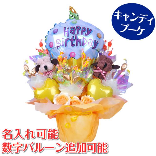 タオルでできたわんちゃんと、ケーキの形のバルーンで誕生日のお祝い☆食べられる本物のキャンディなので、飾った後は、みんなで美味しく頂くこともできます。二度おいしいキャンディーブーケでお祝いの気持ちを伝えてみませんか?メッセージカードは無料で添付させていただきます!お好みのカードを選択してください賞味期限も1カ月以上ありますので、長く楽しんでいただけます。