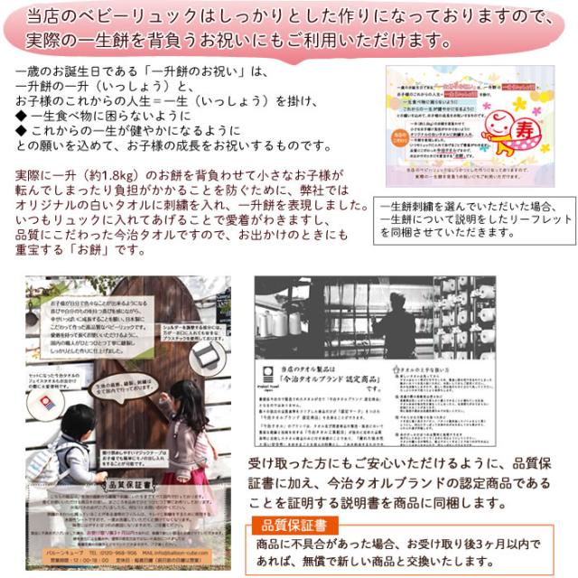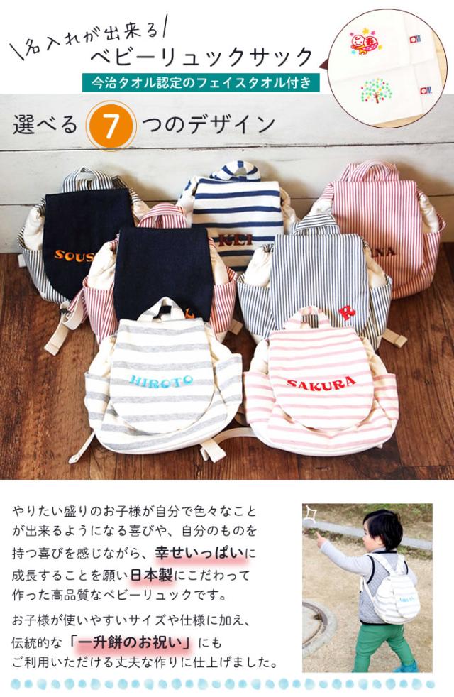 出産祝い 日本製 名入れ ベビーリュック 今治タオル付き ベビーリュックサック 一升餅用 御祝 ベビー リュック ギフト プレゼント