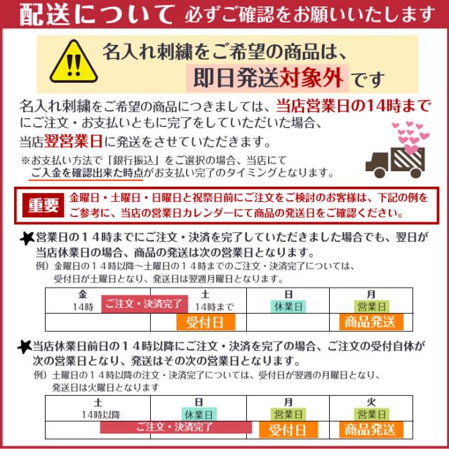 名入れ刺繍をご希望の場合、カートの備考欄に必要事項をご記入ください。