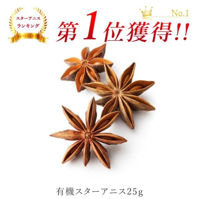 スターアニス オーガニック 25g八角 最高級グレード 有機スターアニス使用 八角茴香 大茴香 スパイスハーブ 香辛料 フェアトレード