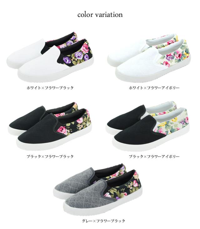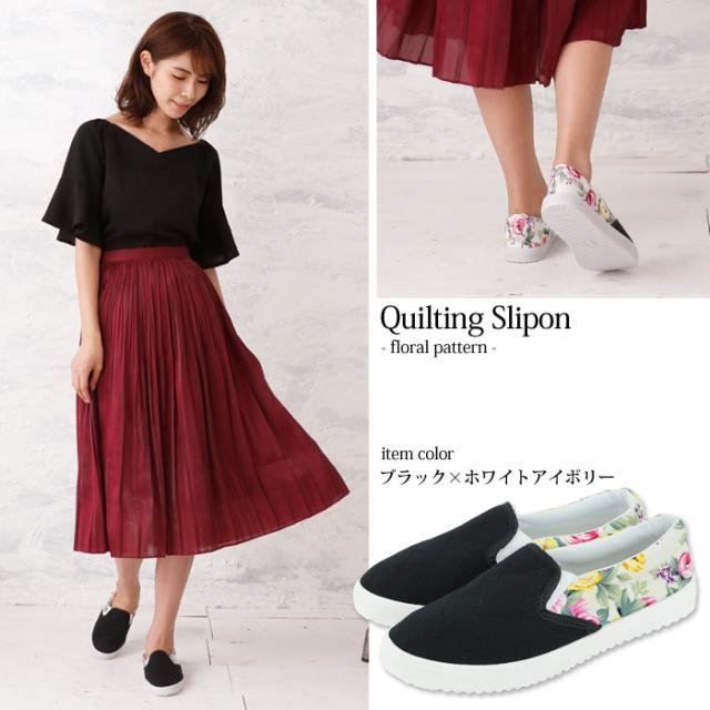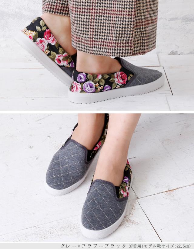 アウトレット キルティング スリッポン レディース 花柄 Lagalt ハイバック 春物 春夏 女性 バイカラー スニーカー (ar-ATSP)[宅配B]【送料470】 フラットシューズ ぺたんこ 靴 痛くない 女性 疲れない 軽い 履きやすい