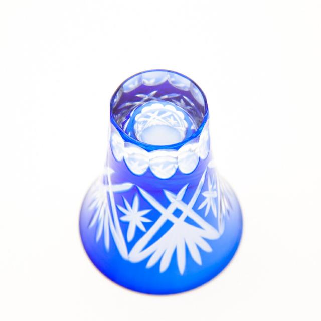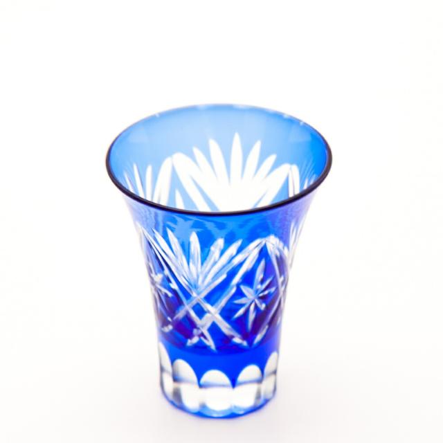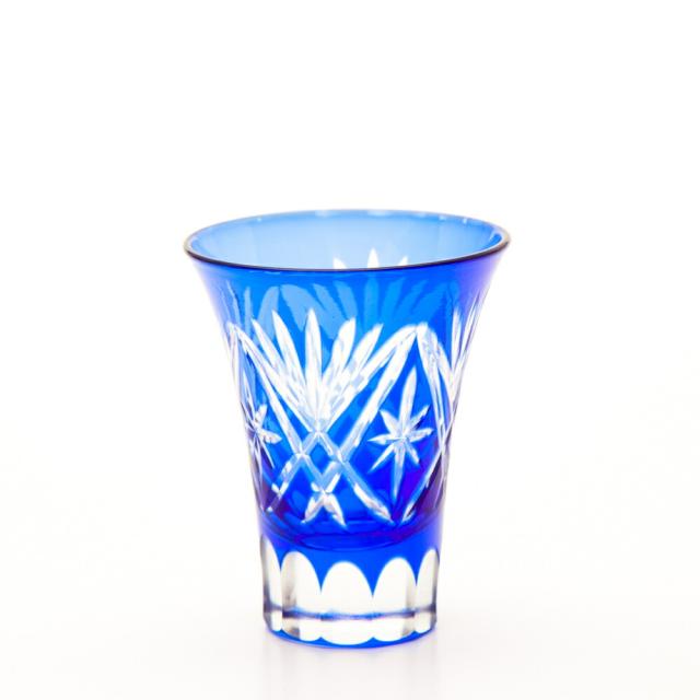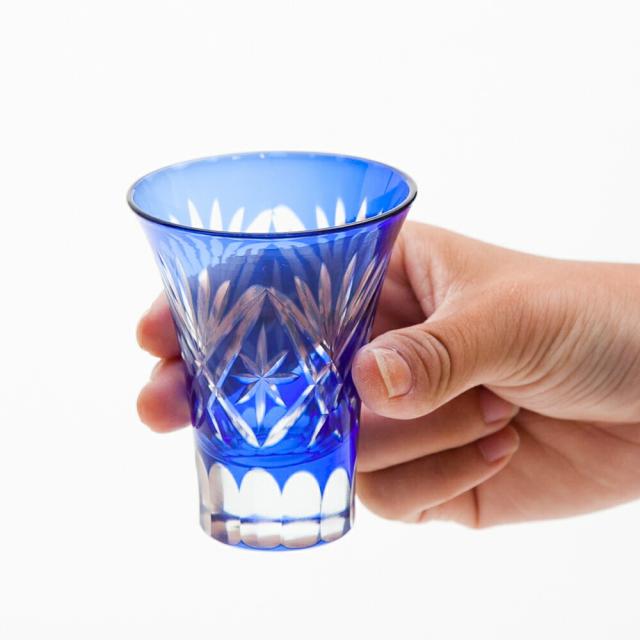 切子 一口ビールグラス 切子グラス ぐい呑み 日本酒 冷酒 お酒 ガラス 切子杯 おしゃれぐい呑み松剣 ブルー 濃青色 食洗機対応 k_name