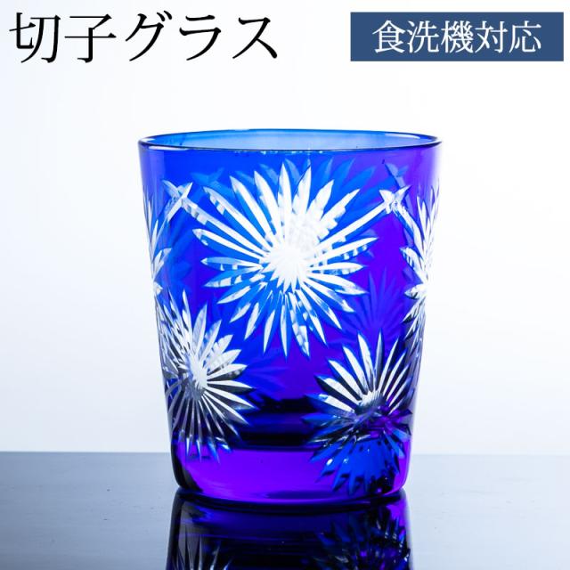切子オールドグラス 切子グラス ロックグラス タンブラー おしゃれ コップ ガラス 花火紋様 コバルトブルー 濃青色 食洗機対応 k_name