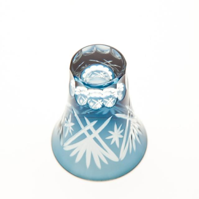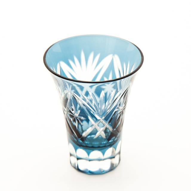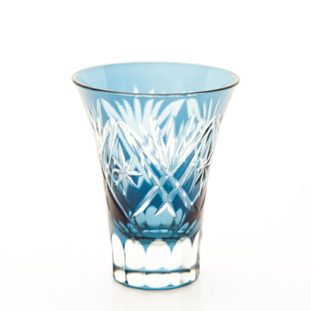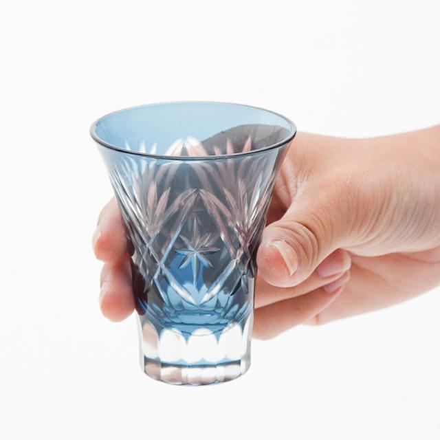 切子 一口ビールグラス 切子グラス ぐい呑み 日本酒 冷酒 お酒 ガラス 切子杯 おしゃれぐい呑み松剣 インクブルー 青藍 食洗機対応 k_name