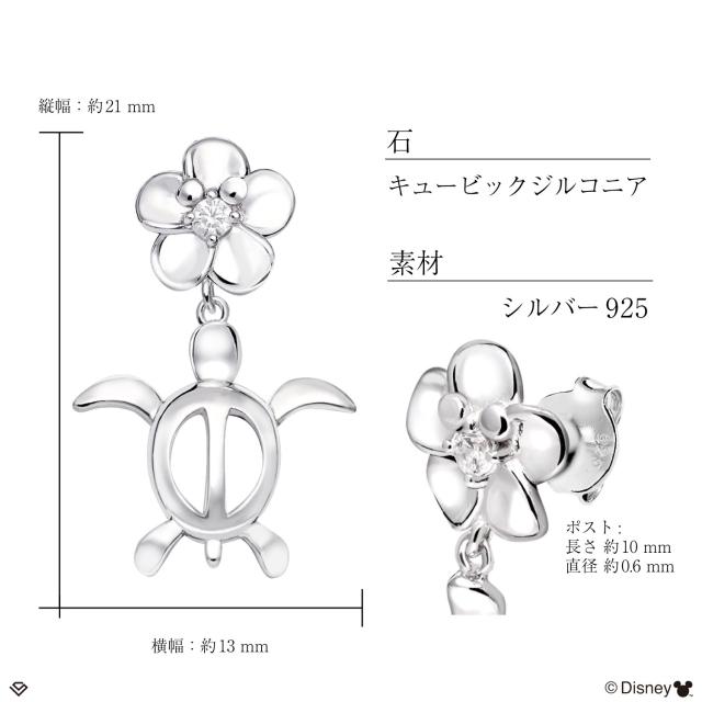 ピアスは、「女性の魅力を引き立てる花」と呼ばれるプルメリアと、「海の守り神」として愛されるホヌ(ウミガメ)を贅沢にあしらった揺れるデザイン。