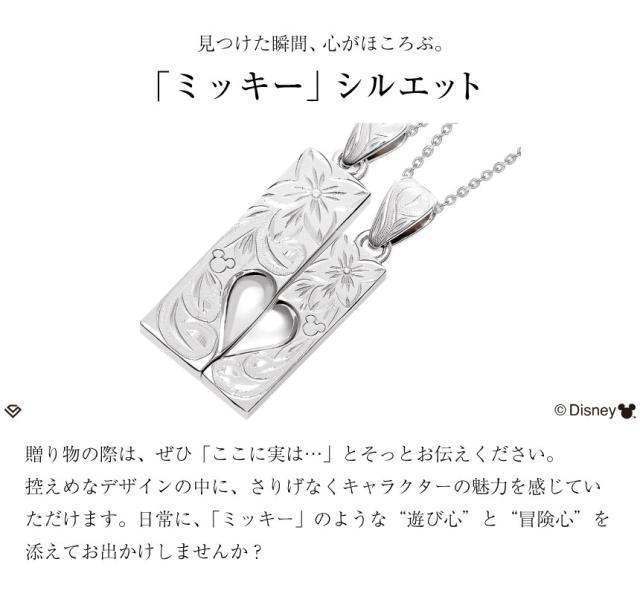 ララクリスティー ペアネックレス ハワイアンジュエリー シルバー Disney ディズニー コレクション プレート ネックレス ペア プルメリア スクロール 「ミッキー」 レディース プレゼント クリスマス_wp