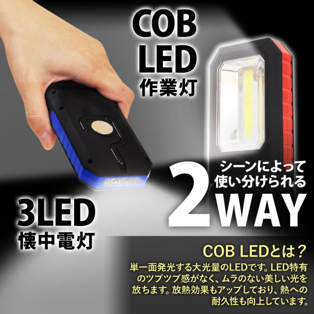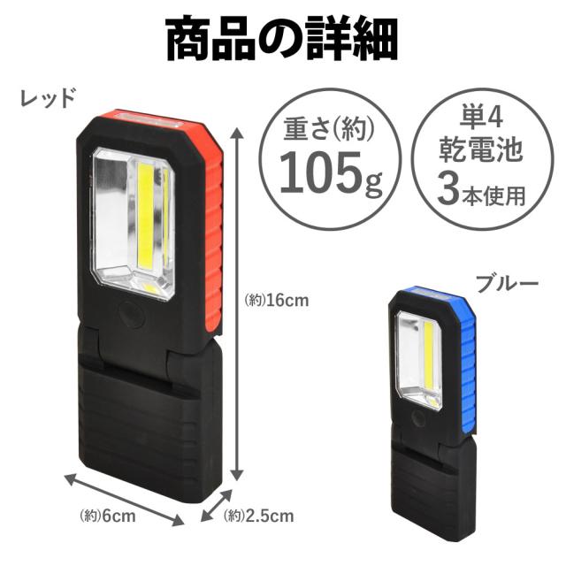 作業灯 LED COB ワークライト 車 倉庫 作業 マグネット フック LEDライト 電池式 磁石 角度調節 ハンドライト