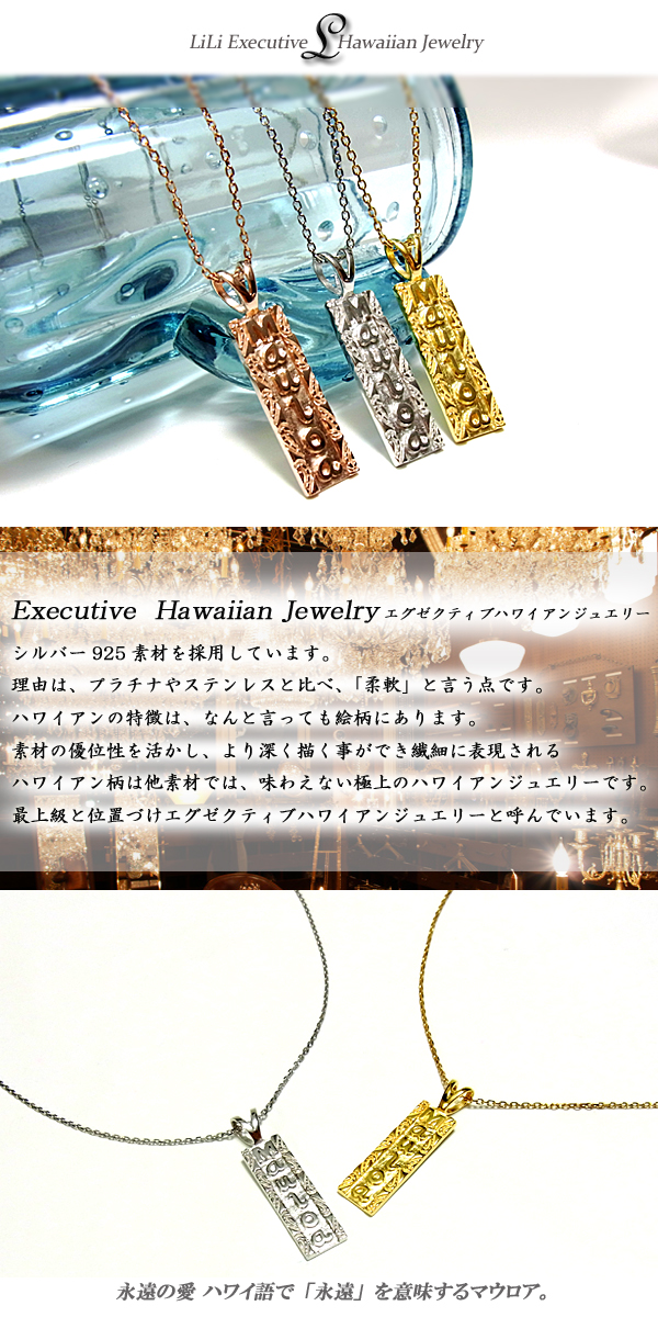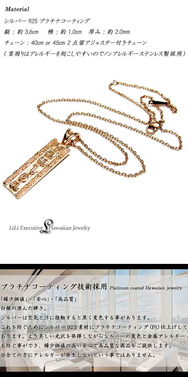 ハワイアンジュエリー リリ エグゼクティブ プラチナ 仕上げ プレートネックレス レディース メンズ シルバー925 誕生日 記念 ラッピング対応 アレルギー対応