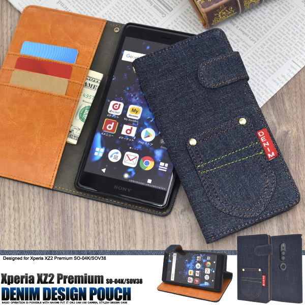 スマホケース Xperia XZ2 Premium SO-04K SOV38 手帳型 デニムデザイン 携帯カバー シンプル 可愛い おしゃれ 携帯ケース デニムケース キズ防止 汚れ防止 スマホカバー 装着簡単 可愛い おしゃれ denimケース 保護カバー auスマホ au携帯カバー 人気 定番