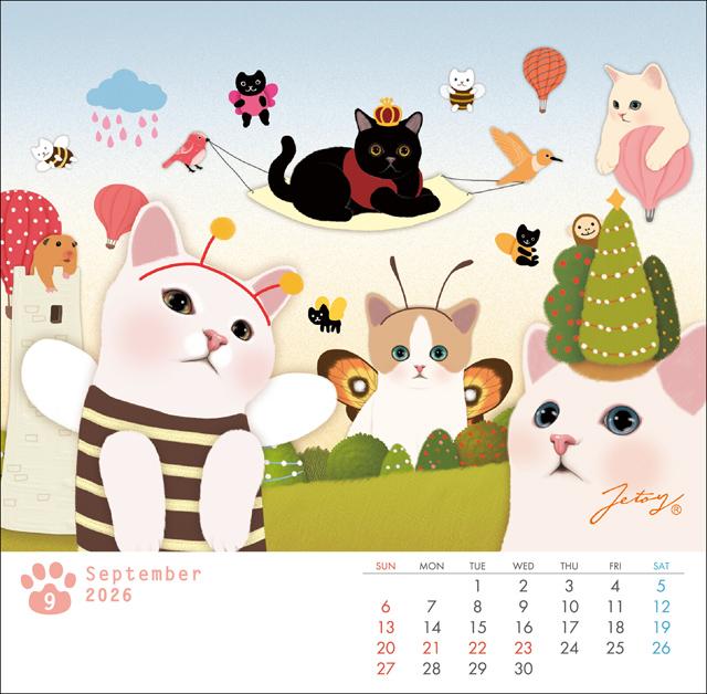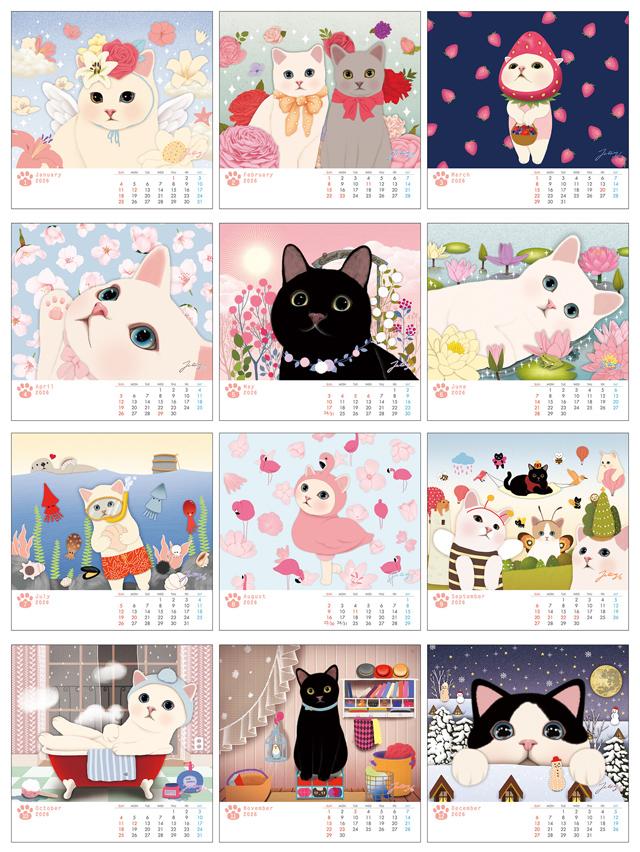 猫 choo choo 卓上カレンダー 【2026年度版】 月めくりタイプ。