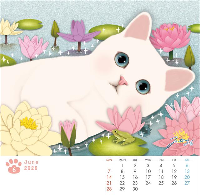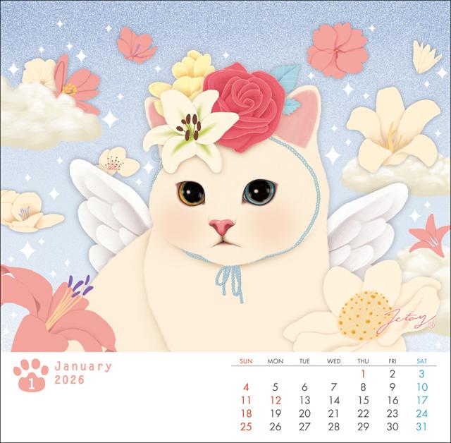 【在庫一掃★残りわずか】 カレンダー 2026 卓上 猫 2026年度 令和8年 日本製 choochoo 白猫 JETOY ジェトイ 月めくり 動物 ペット 小サイズ 猫柄 猫雑貨 猫グッズ かわいい おしゃれ 韓国 ギフト プレゼント 【 誕生日 】