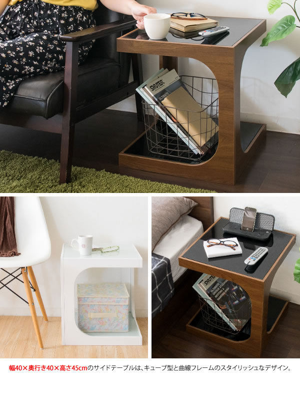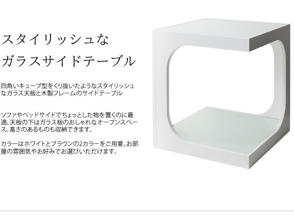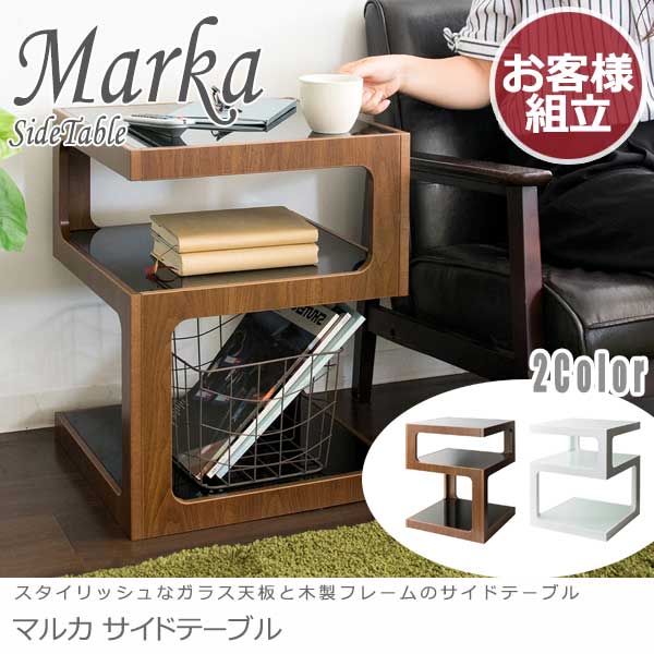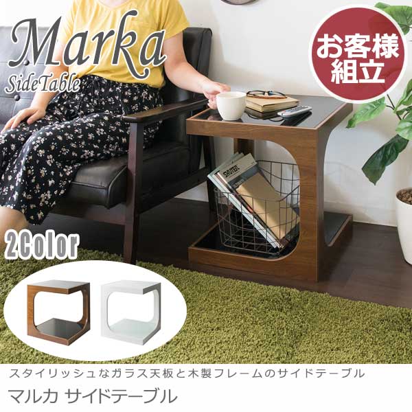 Marka マルカ サイドテーブル (ナイトテーブル ガラストップ 木製 モダンデザイン 机 ブラウン ホワイト 白 正方形 おしゃれ)