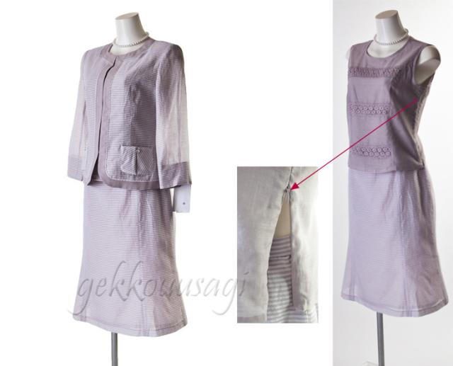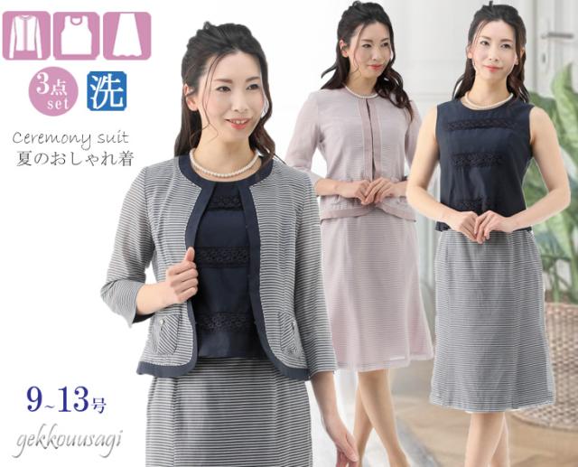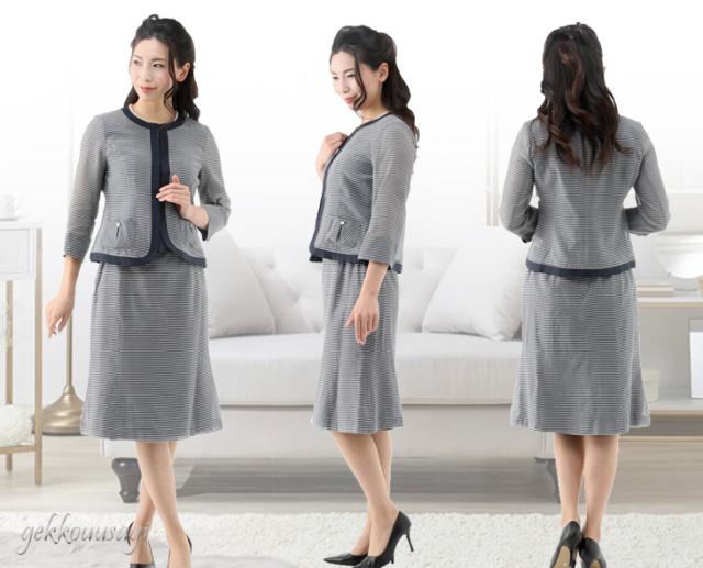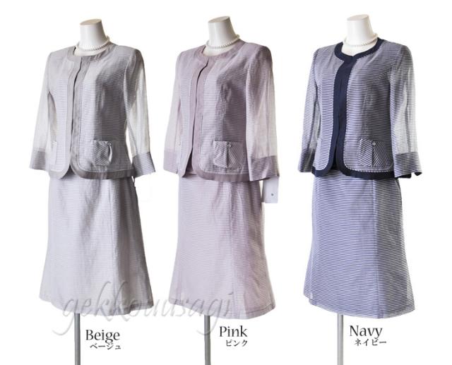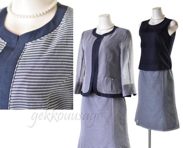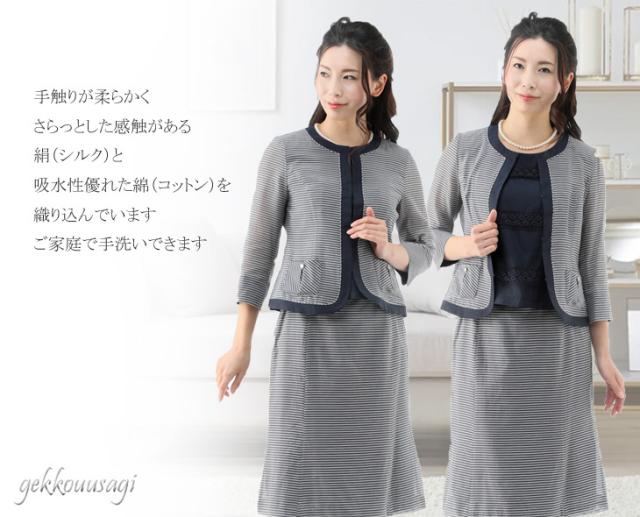 サマースーツ 9号 11号 13号 シルク綿 ボーダー 3点スーツ サマースーツ 夏スーツ 夏 上質素材 着回し 秋スーツ 絹 コットン 同窓会 女子会 20代 30代 40代 50代 60代 70代 80代 ママ 母親 スーツ summer COOL 猛暑対策 クール783(au2f3u)