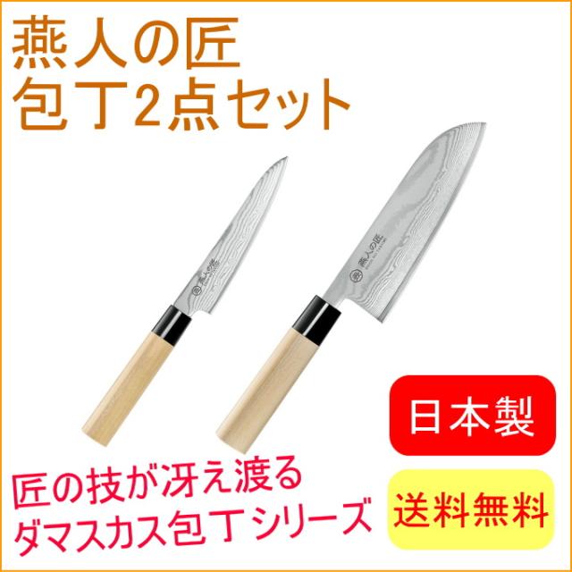 燕人の匠 三徳包丁165mm&ペティナイフ130mm (ETW-3000) 送料無料 両刃 日本産 燕三条産 切れる 三徳包丁 ペティナイフ